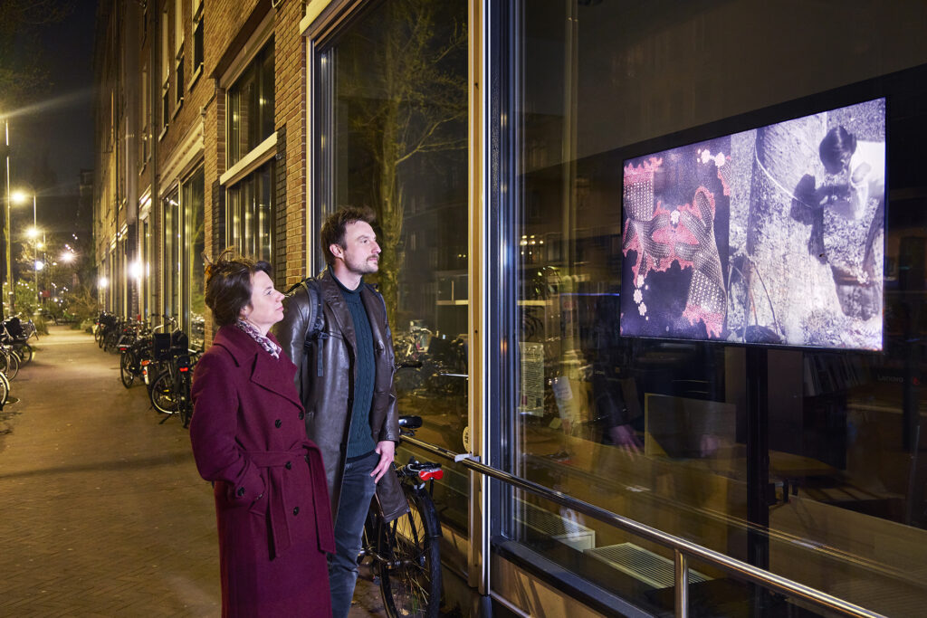 De film is iedere dag en nacht vanaf buiten te zien, van 21 februari t/m 24 maart 2026 bij OBA Javaplein 2 Amsterdam